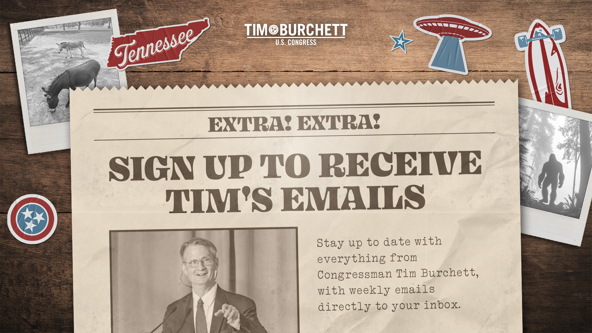 Tim Burchett is a lifelong East Tennessee conservative, a husband, a dad, and the Republican Congressman for Congress in Tennessee’s 2nd Congressional District. He ran for Congress because he was fed up with the status quo in our nation’s Capitol.